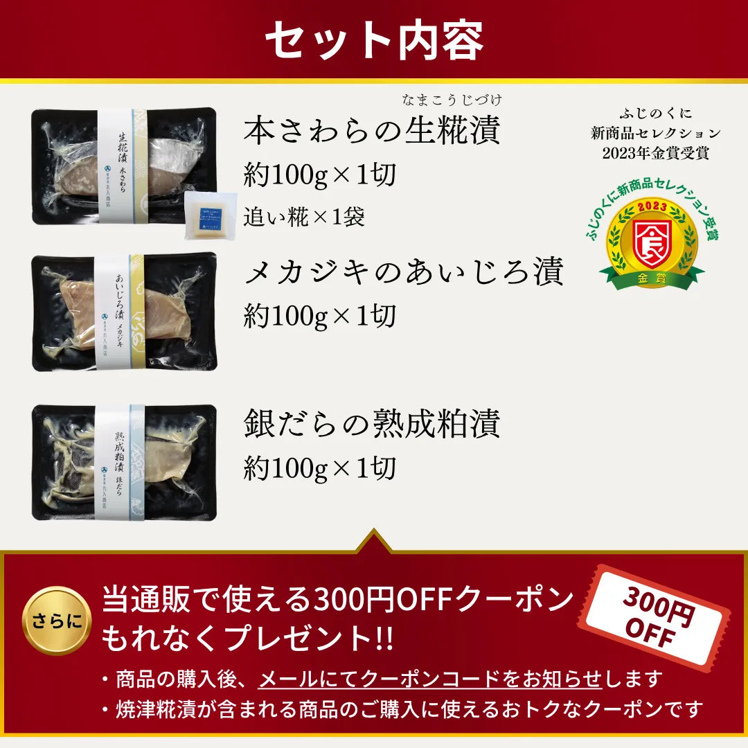 「生糀漬」「あいじろ漬 」「熟成粕漬」の 、